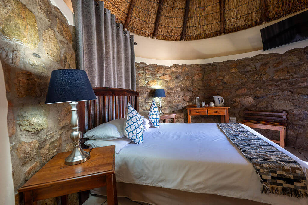Choose comfortable thatched rondawels, family rooms, or secure caravan/camping sites with power. Rooms feature en-suite bathrooms, air conditioning, heaters, fans, electric blankets, tea/coffee facilities, and satellite TV in most.
